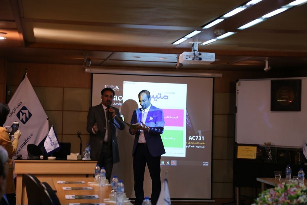 همچنین رئیس هیئت مدیره آقای علی توشه جو پس از خوش آمدگویی به حضار، سخنرانی خود را با معرفی اهداف شرکت متین جهت ارائه خدمات و کالای با کیفیت آغاز کردند.