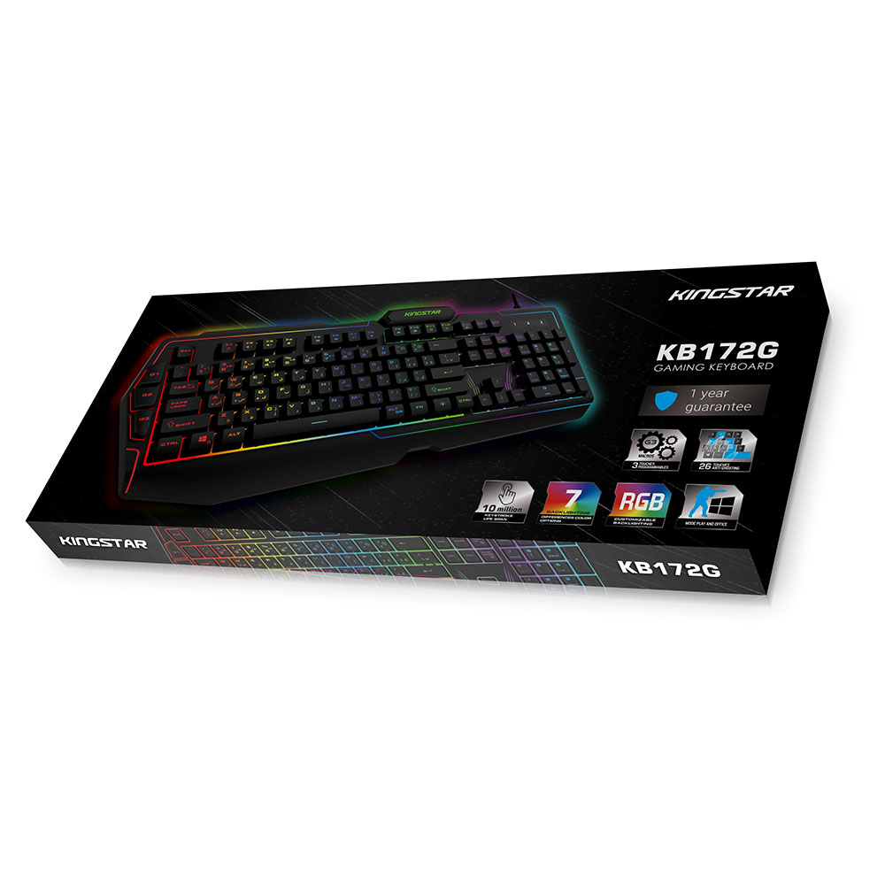 از نکات برجستهی محصول کیبورد گیمینگ کینگ استار مدل kb172g میتوان به سازگاری آن با اکثر سیستم عاملهای پرکاربرد ازجمله Linux, Mac OS, Windows All Versions اشاره کرد. با استفاده از یک کابل 180 سانتی متری از طریق پورت USB به سیستم متصل میگردد. همچنین دارای 700 گرم وزن و طول عمر 10 میلیون بار کلیک جهت استفاده کاربران میباشد.