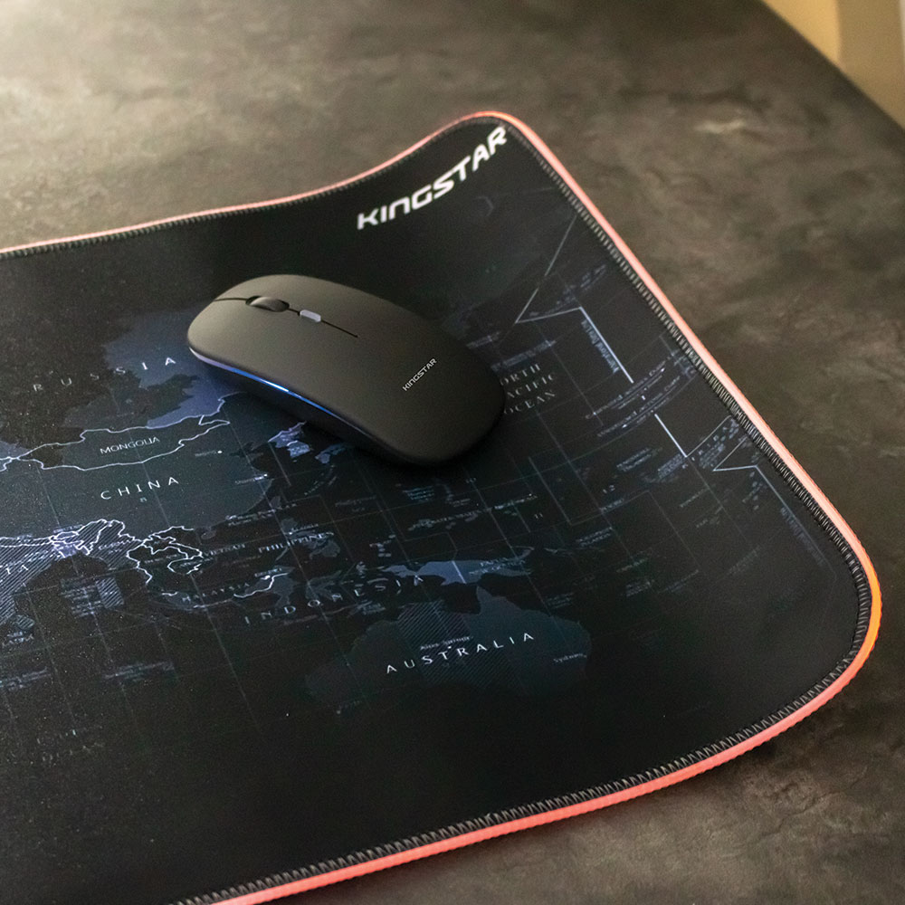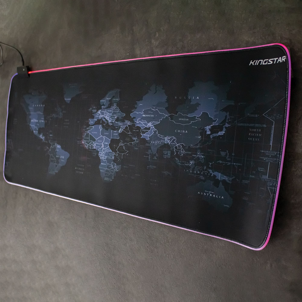همچنین این محصول پرطرفدار دارای ولتاژ 5ولت و جریان بیش از 100 میلی آمپر نیز میباشد. از اقلام همراه این کالا میتوان به کابل micro-USB و دفترچه راهنما اشاره کرد. از دیگر مزایای این ماوس پد کینگ استار (kingstar)، جابجایی راحت آن بعلت قابلیت تا شدن (رول شدن) به همراه طراحی ضد آب میباشد. از دیگر ویژگی برجستهی این کالای گیمینگ طراحی زیبای نقشه جهان بر روی صفحه ماوس پد میباشد.