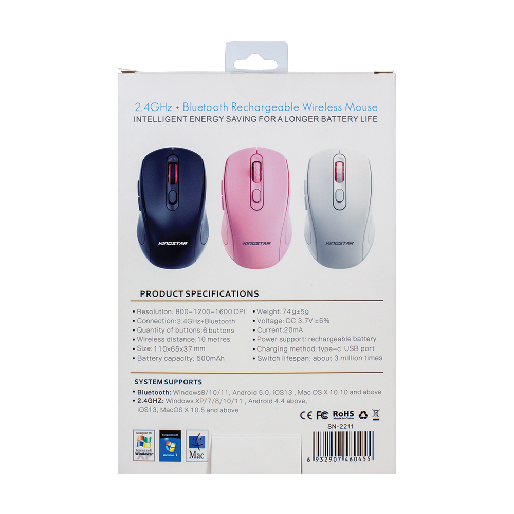 این کالا با 6کلید دارای قابلیت اتصال هم به وسیلهی دانگل USB 2.4 گیگاهرتز و هم به وسیله بلوتوث نسخه 5.1 میباشد. ماوس وایرلس کینگ استار مدل KM620BRW با محدوده عملکرد 10متر از کیفیت بسیار بالایی برخوردار است. همچنین علاوه بر قابلیت انتقال و عملکرد سریع، با 3میلیون بار کلیک از طول عمر قابل توجهی برخوردار میباشد. ماوس بیسیم مدل KM620BRW دارای 3 حالت دقت قابل تنظیم 800-1200-1600 DPI میباشد که برای کاربران میزان قابل توجهی است.
