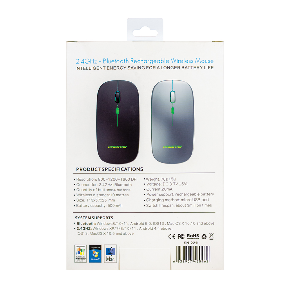 - ماوس وایرلس و اتصال از طریق دانگل USB (2.4 گیگاهرتز) و بلوتوث نسخه 5.1