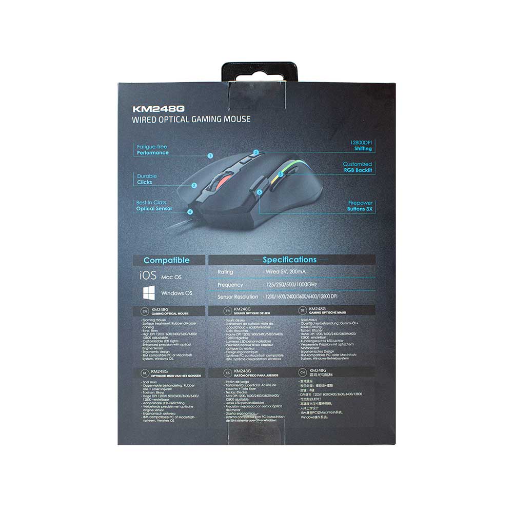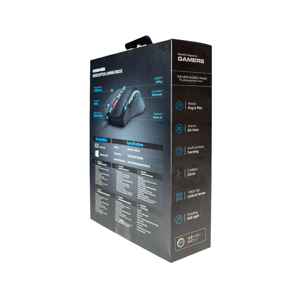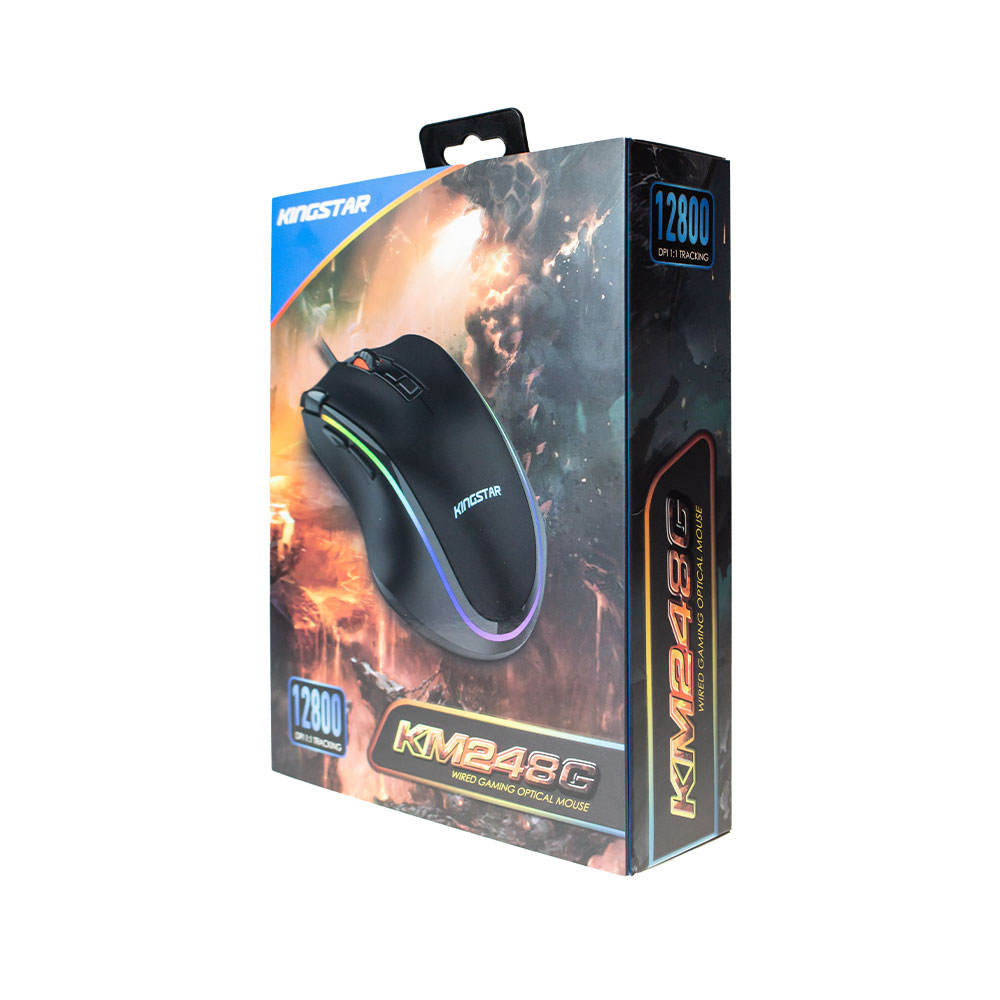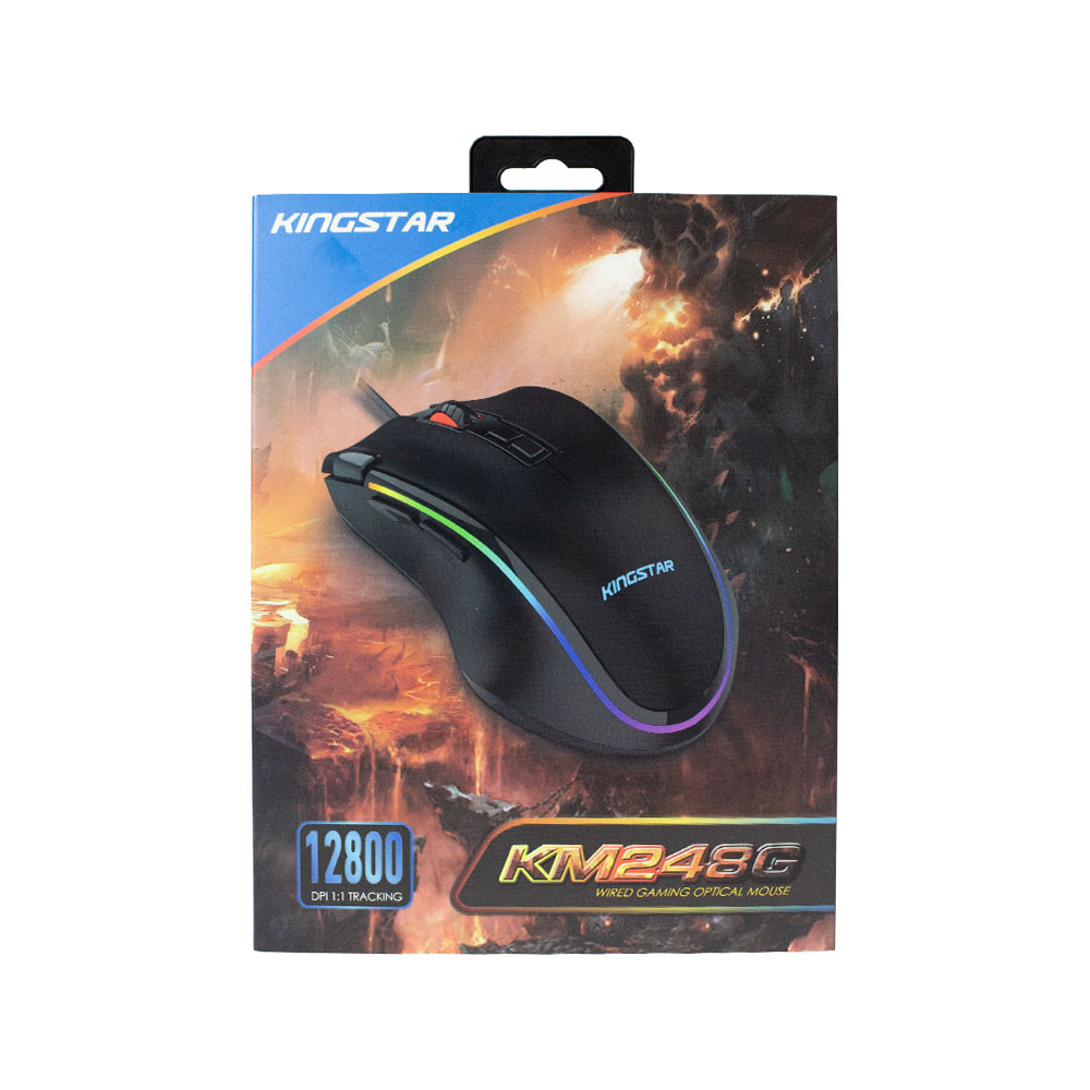 ماوسهای گیمینگ از پرطرفدارترین محصولات کمپانی کینگ استار است که با تکیه بر زیبایی و جذابیت در طراحی به بازار عرضه گردیده است. ماوس گیمینگ کینگ استار مدل KM248G با 180 سانتی متر طول کابل و جنس کنفی آن که از طریق پورت USB به سیستم متصل میگردد، امروزه مورد استفاده کاربران زیادی قرار گرفته است. از مشخصههای فنی این ماوس میتوان به مقدار جریان 200 میلی آمپر و ولتاژ 5 ولت آن هنگام استفاده، اشاره کرد.