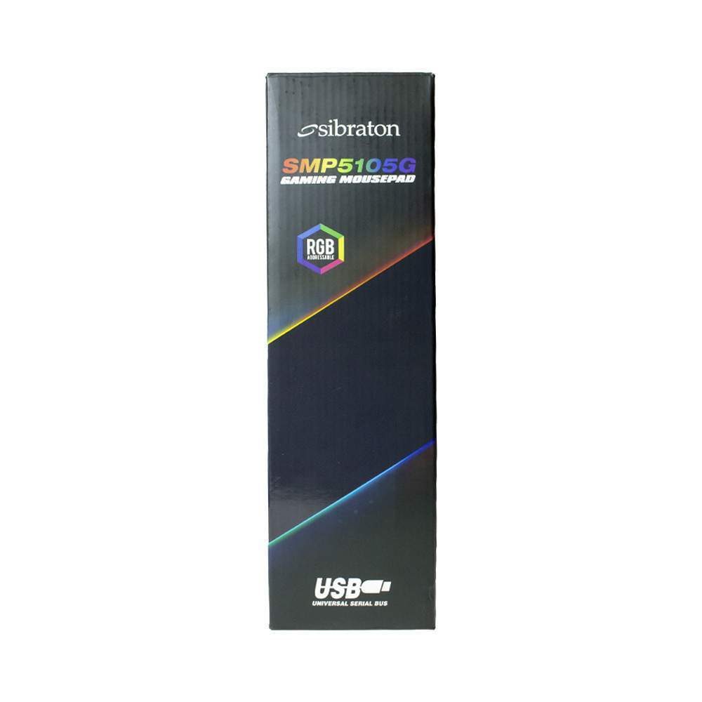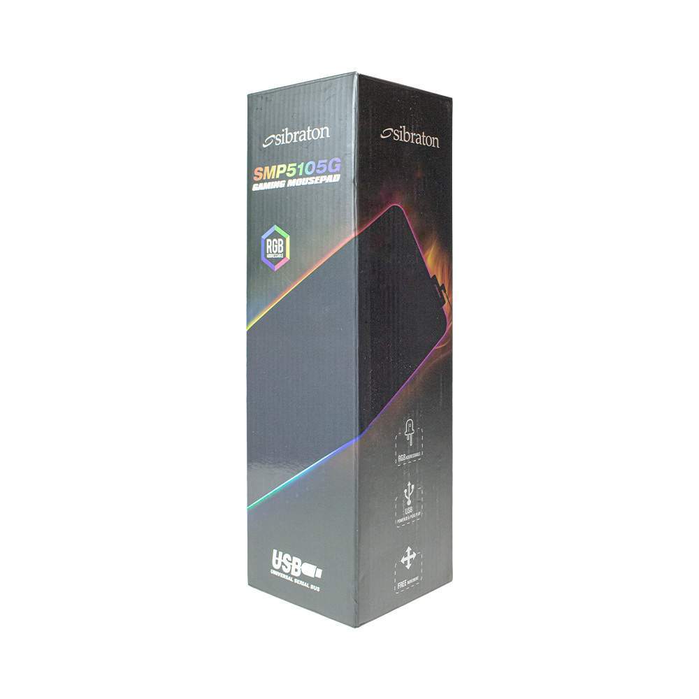 ابعاد این ماوس پد سیبراتون 800*300*4 میلی متر با وزن 600گرم میباشد که موجب کارایی مناسب برای گیمرهاست. همچنین حاوی نورپردازی RGB در نوارههای کناری این ماوس پد میباشد که سبب جلب رضایت اکثریت کاربران جهت استفاده از این محصول شده است. نحوه اتصال ماوس پد SMP5105G جهت شروع نورپردازی بوسیله یک کابل 1.8متر با پورت USB است.