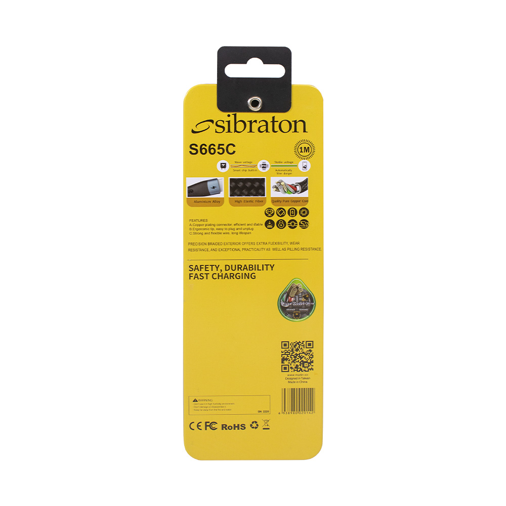 مشخصات ظاهری کابل تایپ سی سیبراتون مدل S665C (Sibraton)